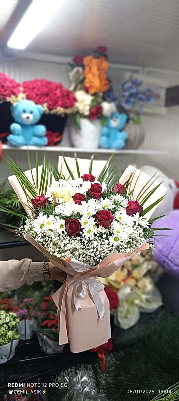 Antakya Mert Çiçekçilik’in zarif tasarımıyla sunulan beyaz papatya ve kırmızı gül buketi, saflık ve tutkunun mükemmel birleşimini simgeler. Beyaz papatyanın masumiyeti ile kırmızı gülün derin anlamı, özel anlarınıza değer katacak etkileyici bir hediye seçeneğidir.